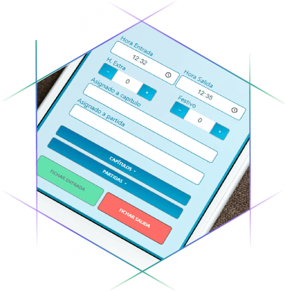 Fichaje en tiempo real por móvil, navegador o dispositivos físicos. Registra entradas, salidas, pausas y horas efectivas.